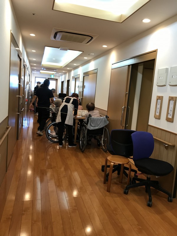 入居者様はいつもとは少し違う空間で一日過ごして頂きました。