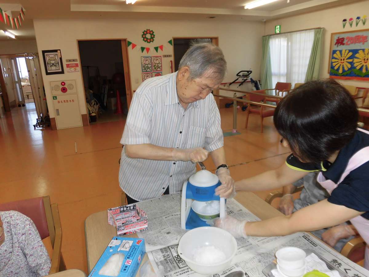お楽しみレクにて、かき氷の第二回をやりました。