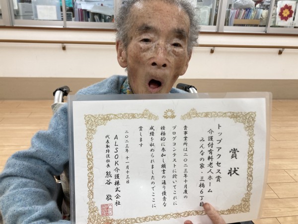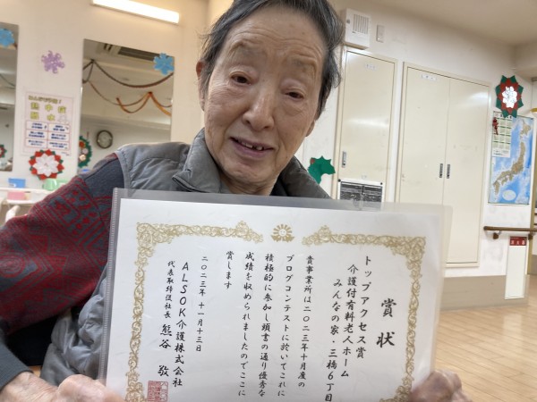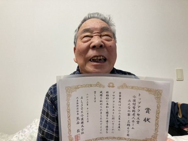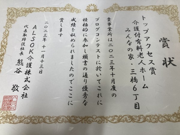 ★☆トップアクセス賞で表彰♪優秀な成績を収められたので、ここに賞します2023年✨ 『みんなの家-三橋6丁目-介護ブログ』☆★