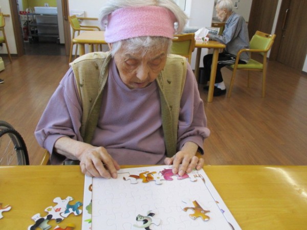これはどうしたらいいのかしら?? 一枚ずつパズルをおいていきました。「何か見えてきたわ?」どんどんと並べていきました(^^♪