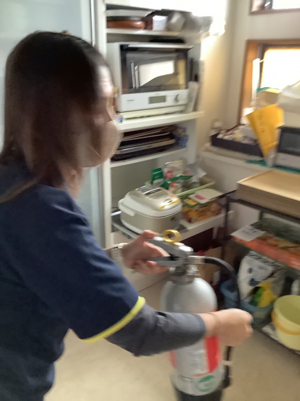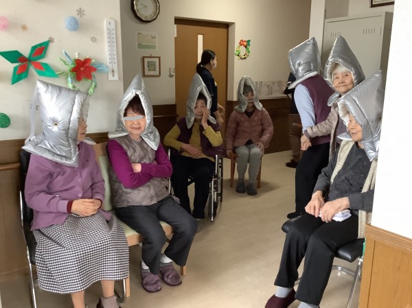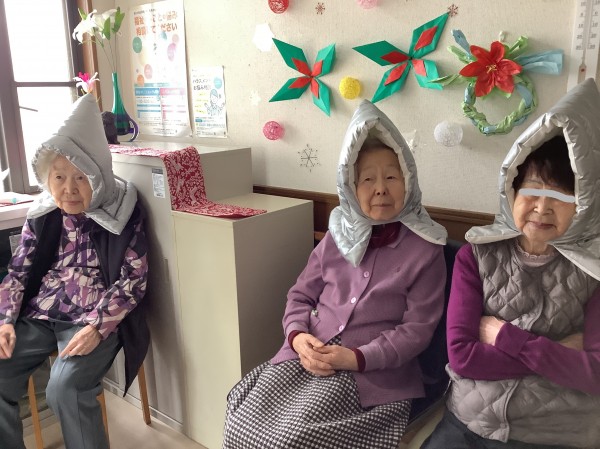 3. 12/19 自衛消防訓練!2Fでは防災頭巾をかぶり本番さながら!落ち着いて避難出来ておりますね!最後は記念撮影~(*´艸`*)