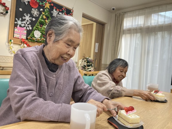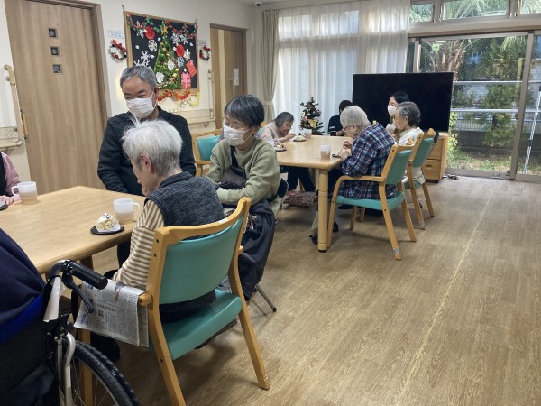 おやつでは、クリスマスケーキを召し上がっていただきました。