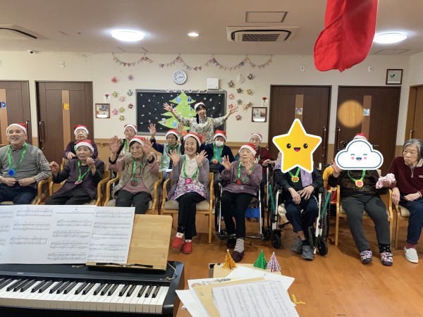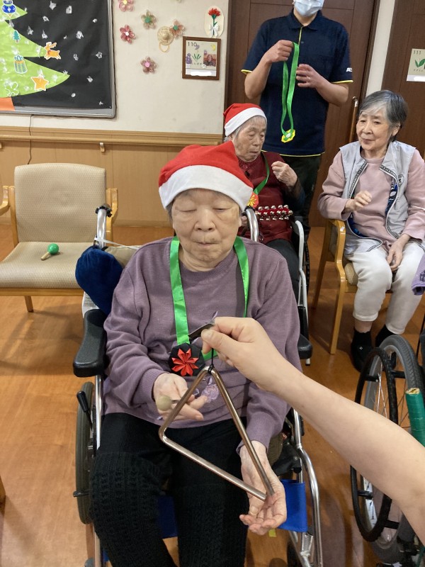 年内最後の大きなイベントという事でお昼にお寿司・おやつにクリスマスケーキを食べ2ユニット合同でレクを行いました。