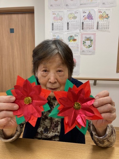 ホームでは少しでもクリスマス気分を盛り上げるために2週間前くらいから飾りつけや作品を作ってきましたよ!