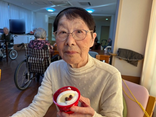 嬉しい笑みが溢れながらクリームをしっかりつけます。