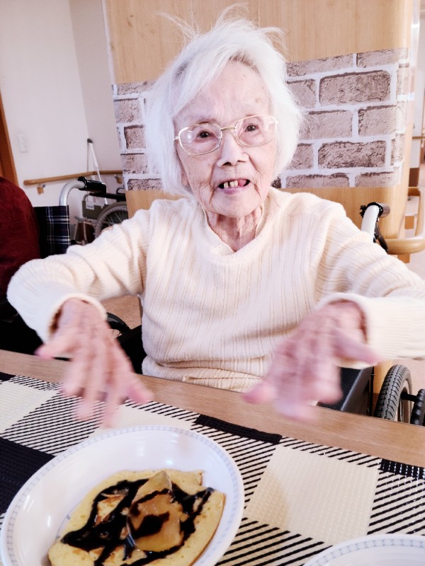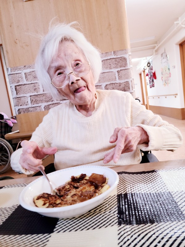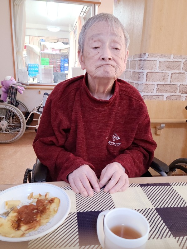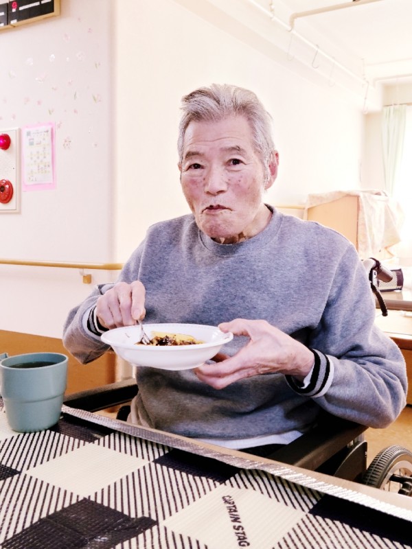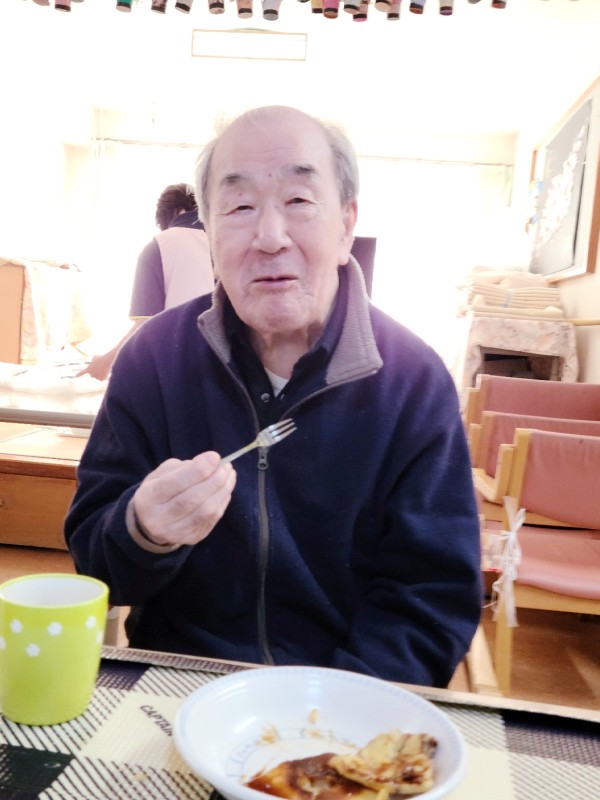 職員がN様に美味しいですか?と尋ねると「マーガリンが決め手だな」との事。
