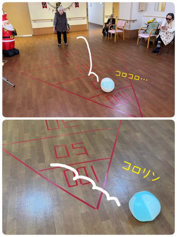 もうすぐ104才様が、ボールを投げます。