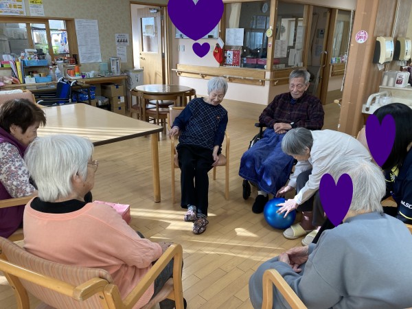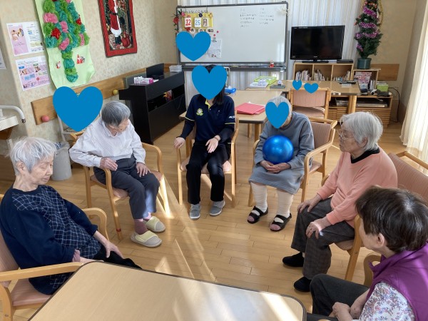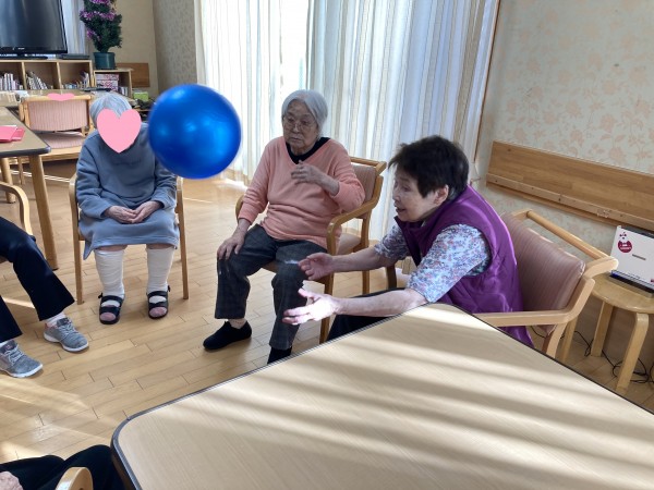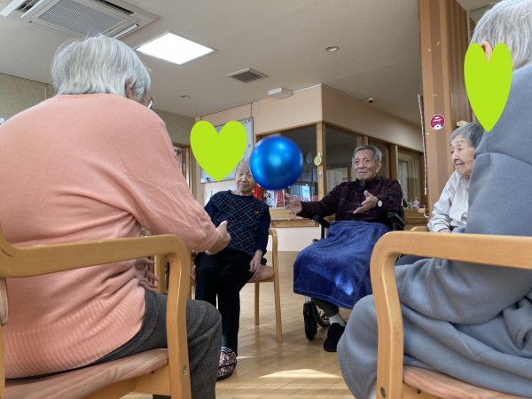 この日は、まず準備運動がてらラジオ体操とALSOK安心体操を行った後に、皆さんで輪になりボ-ル投げをして遊びました(*^^*)