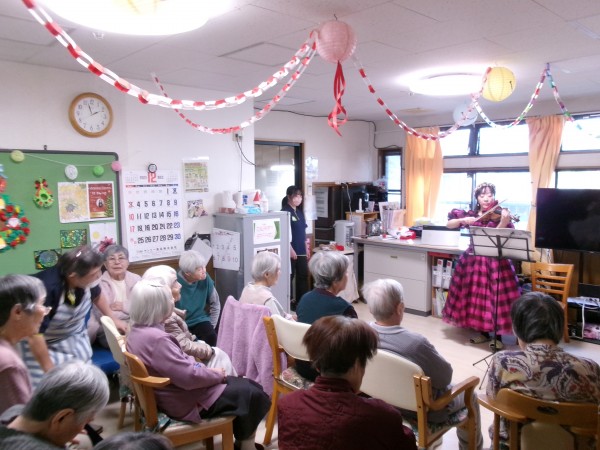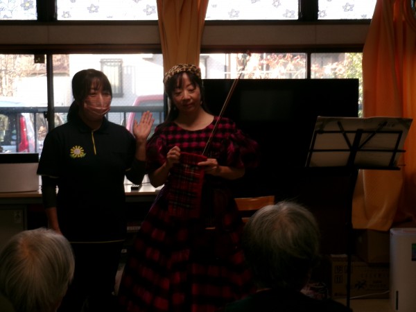 クリスマスコンサート開催!ヴァイオリンの音色にうっとり~♬演奏者はホーム長の双子のお姉さんです!