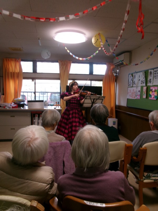 3. クリスマスコンサート開催!ヴァイオリンの音色にうっとり~♬演奏者はホーム長の双子のお姉さんです!