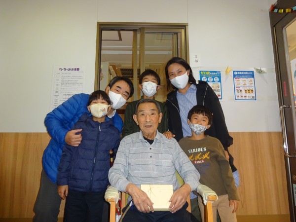 「おめでとう!!」と可愛い元気な声が、、、そうです!S 様の次女様ご一家の面会です。3人のお孫様とは♥ペンフレンド♥