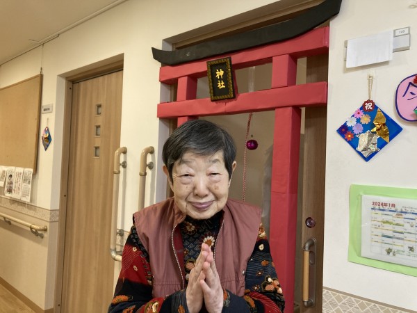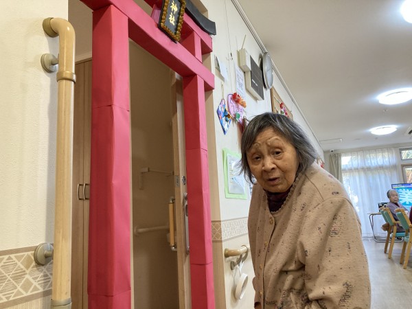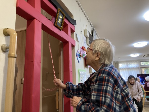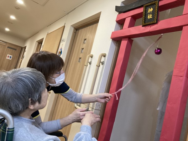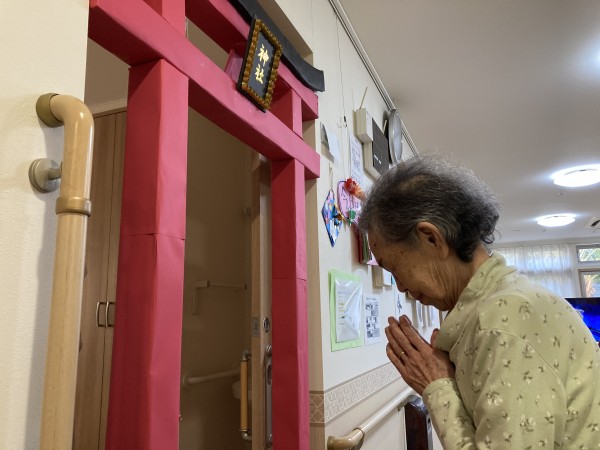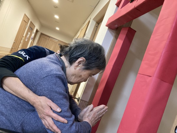 職員の協力で立派な鳥居が出来上がり、ご利用者様にお詣りしていただきました。