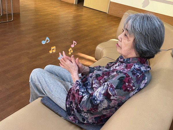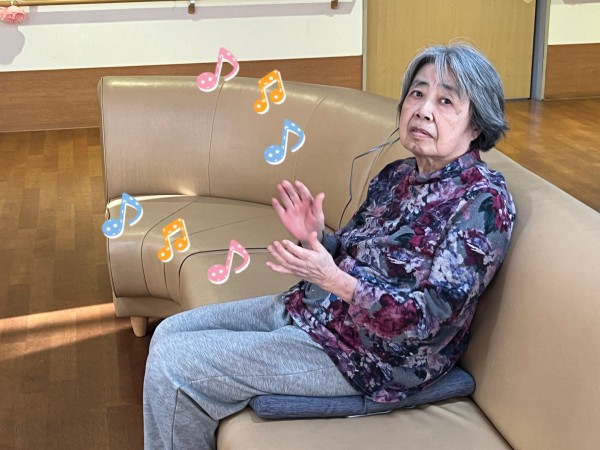 こちらでは、大好きな音楽を聴いてリズムをとる母様。