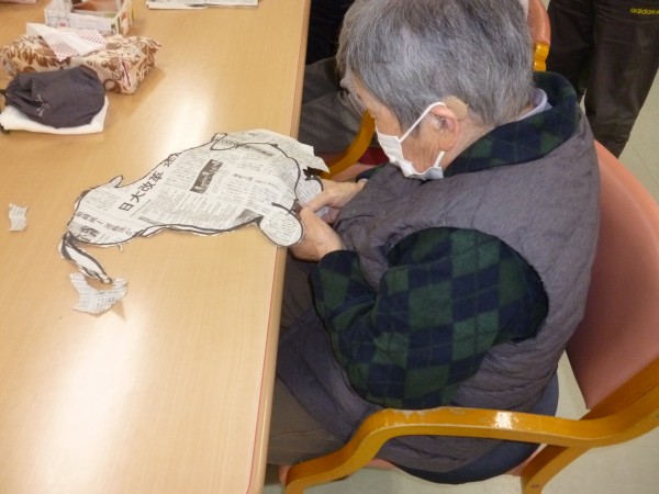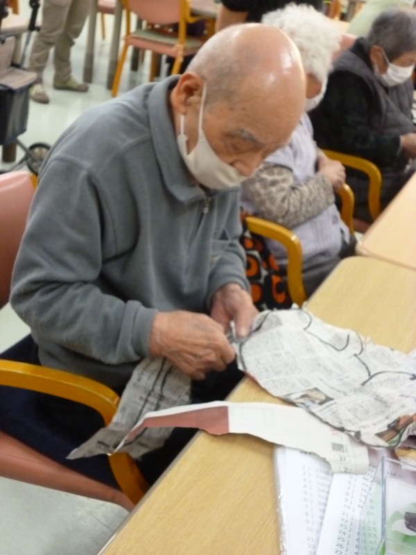 集中して新聞をちぎられたくさん指先を動かしていただきました。