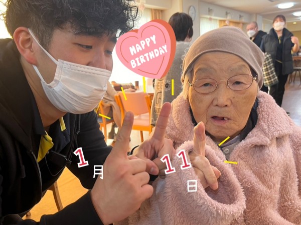 門田ケアリーダーと、『1』並びのめでたいお誕生日を喜び合ってます♪