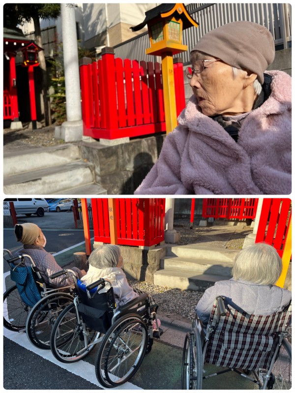 ご入居者様は、外が気持ちいいのでルンルン♪