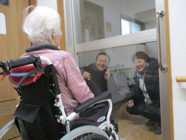 こんにちは! グループホームみんなの家・あきがせの介護ブログです! よろしくお願いいたします。 今日は長男様ご夫婦のガラス越しでの面会のご様子をお知らせいたします!!
