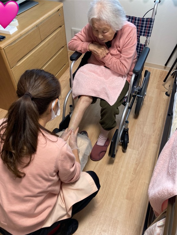 セラピストさんが、私たち、お揃いのピンクのカーディガンで、何とか姉妹みたいね!