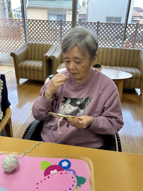 デザインを考えながら穴に毛糸を通すのって本当に大変…思った通りにはいかないし…
