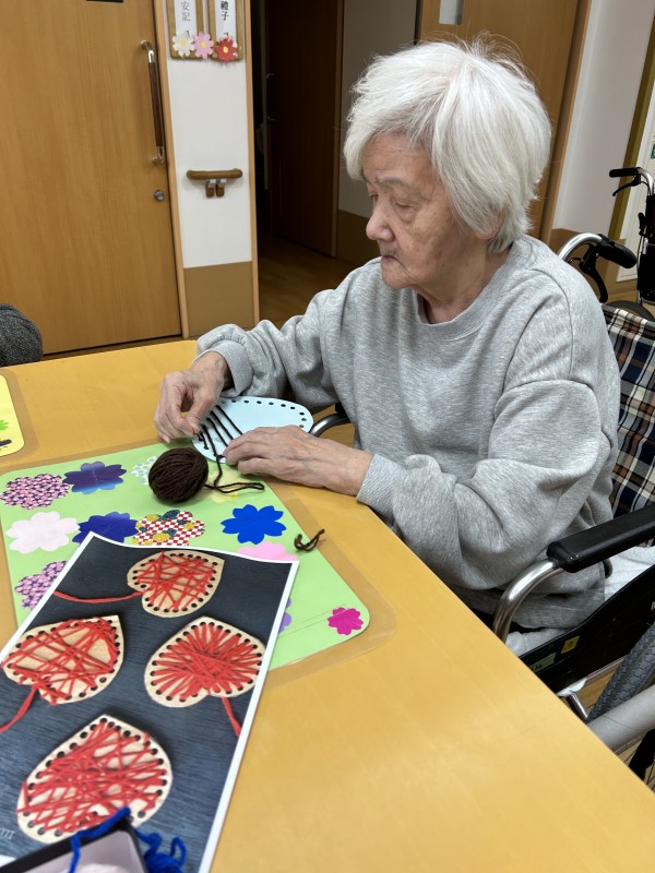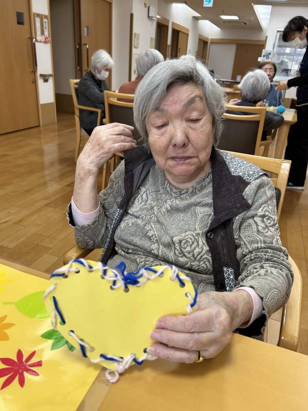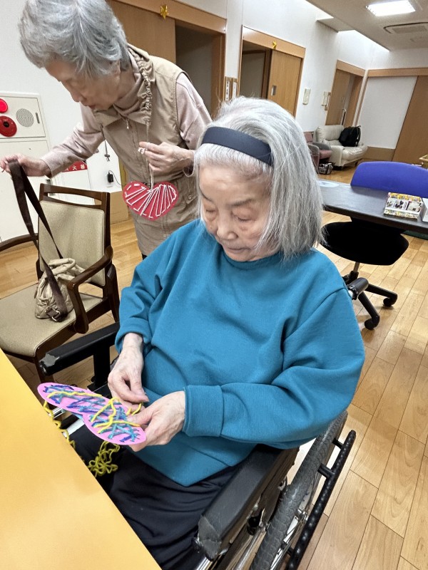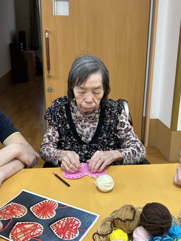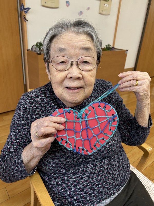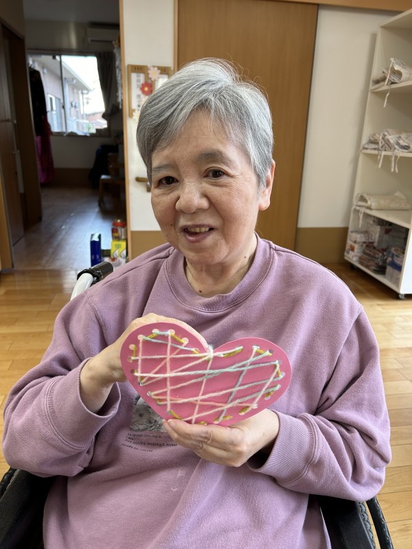 2月のバレンタインデーに先駆けましてハートの形を使った制作レクを行いました。