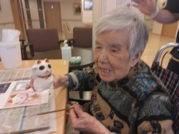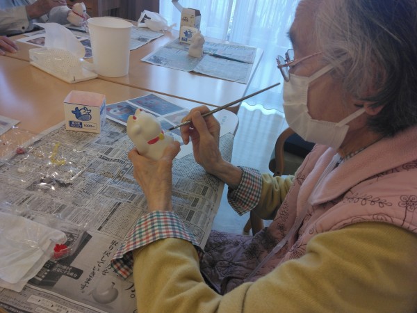 以前行った「だるま作り」が好評だったので今回は「招き猫作り」をしました