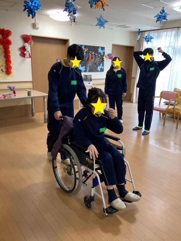 学生の皆さん、車椅子を体験してみましょう(^_^)/