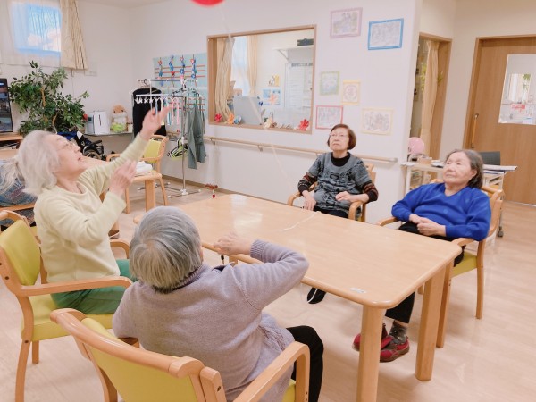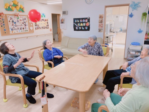 とある日のレクで風船バレーを行いました!(^^♪