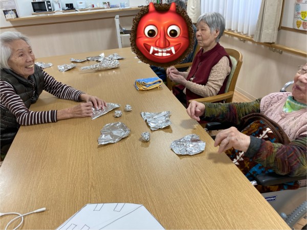 今回、利用者様と一緒に絵の具を使って大きな鬼作りに挑戦してみました。立派な鬼が完成して凄〜い!との声!次は何作ろう〜お楽しみに♡