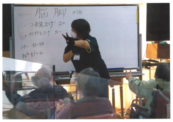 本日午後のレクリエーションは【ノーアエクササイズ】です。脳の血流改善に特化したエクササイズで、楽しみながら行え筋力もアップするといういいことずくめの体操です。ノーアエクササイズは約40分、あっという間の40分。しっかりと体を動かした後は軽く汗ばむほどの運動量、無理なく楽しく体が動かせるって最高ですね♪