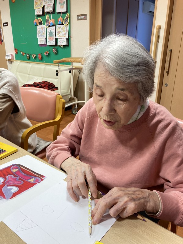 鬼の絵を見本をみながら