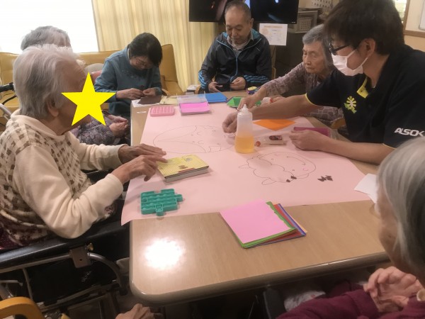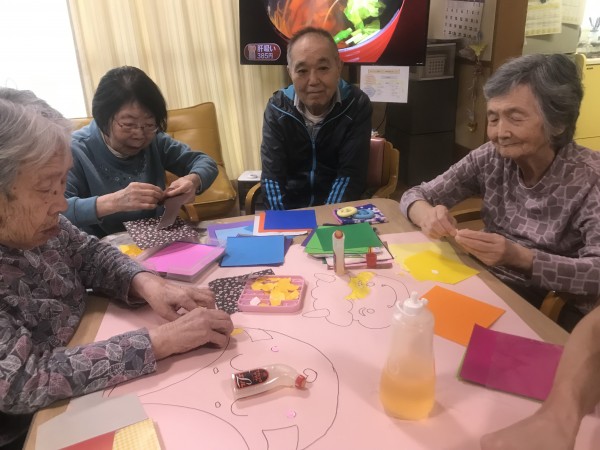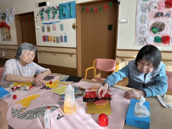 1階の節分壁飾り制作の様子は