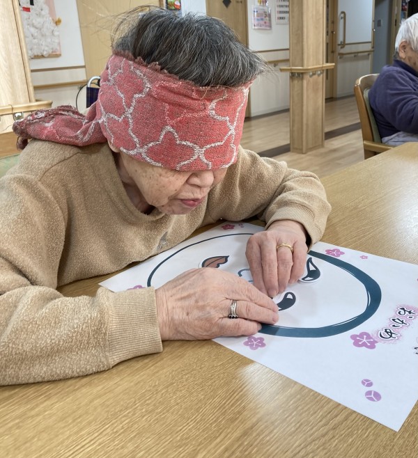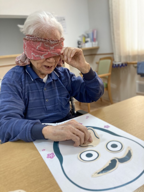 皆さんで楽しめる冬の遊び、ということで本日は福笑いに挑戦です!