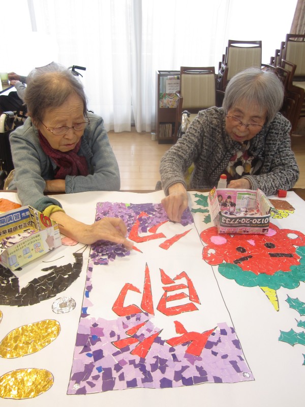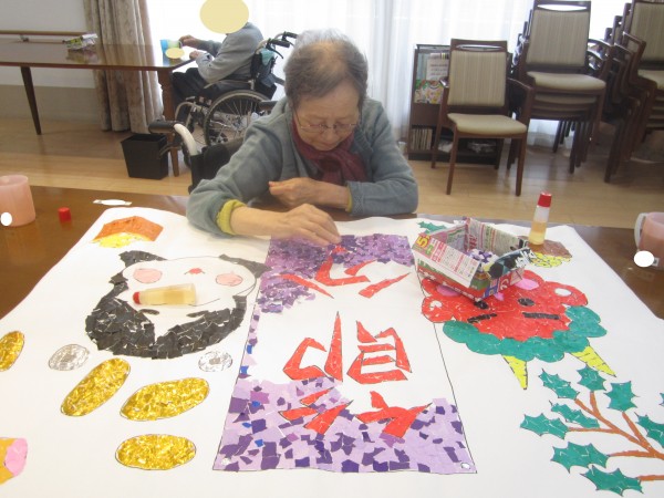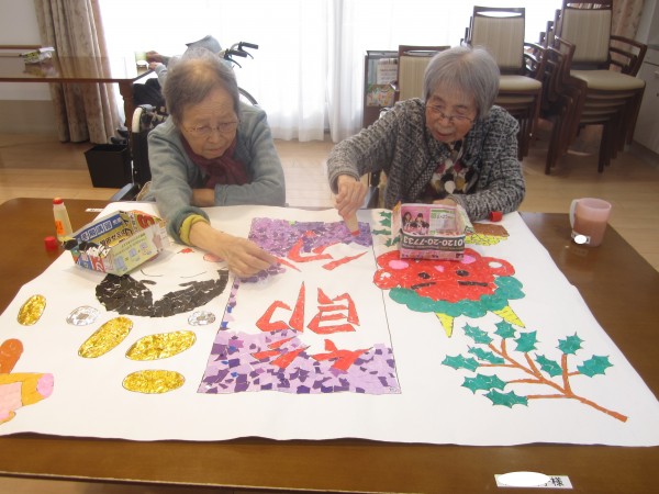★☆節分福と鬼2月の貼り絵作成レクリエーション2024年✨ 『みんなの家 三橋6丁目 介護ブログ』☆★