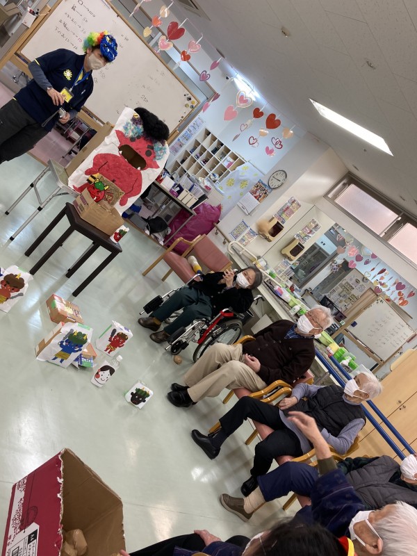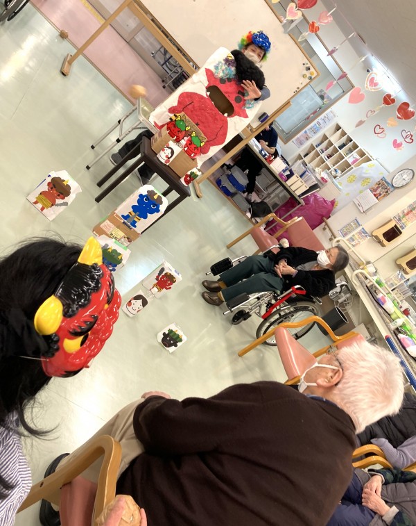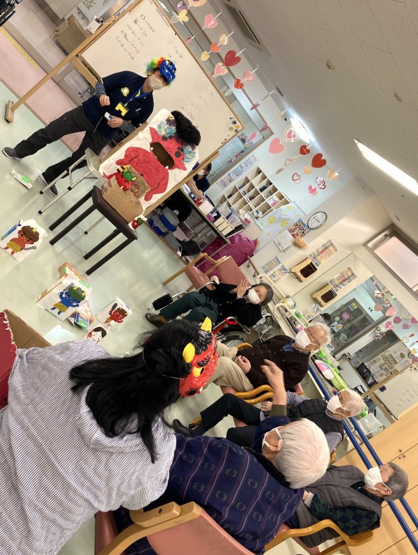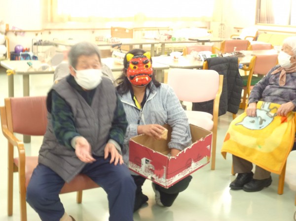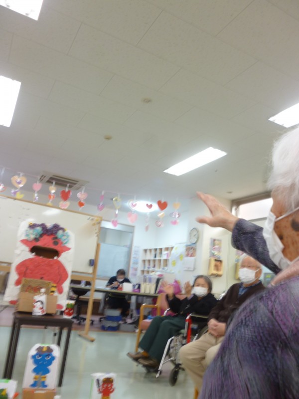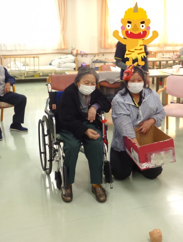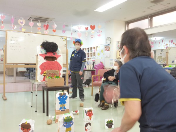 豆に見立てた玉を鬼に向かって投げてい頂きます!