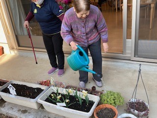 先日職員と入居者様がお花の水やりをしていたので、
