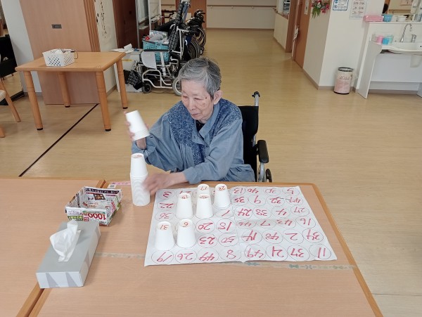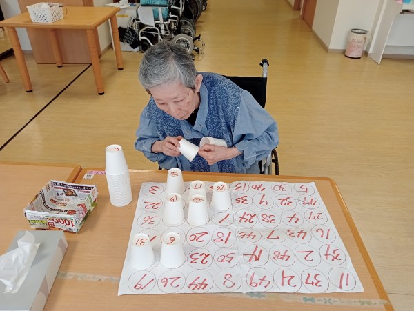 施設では紙コップを使ってこんなレクをやっています!