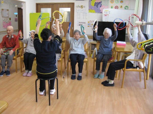 こんにちは! グループホームみんなの家・あきがせの介護ブログです! よろしくお願いいたします。 今日は輪っか体操を行いました。そのご様子をお知らせいたします!