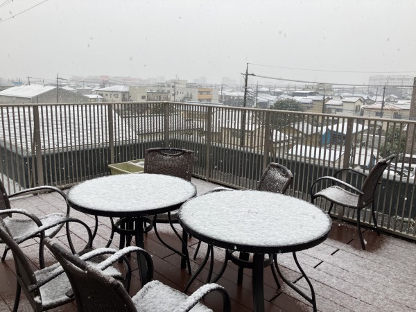 雪がしんしんと降りだしてきました。外がとても静かです。予報通りとはいえ、大雪にならないと良いにですが… アミカの郷川口の周りは薄っすら雪景色です。