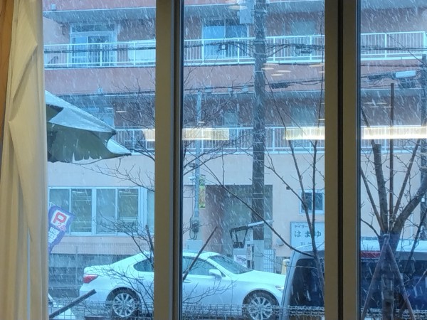 スタッフは帰りの心配、翌朝の通勤の心配で不安がいっぱいの横で、お客様は「雪はきれいだね」と笑顔でした