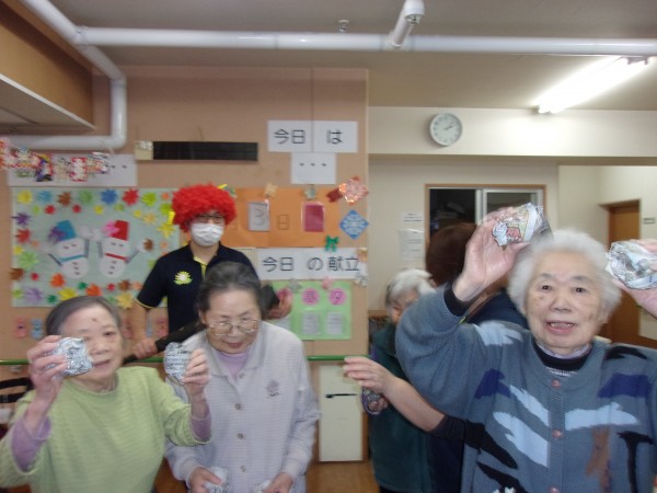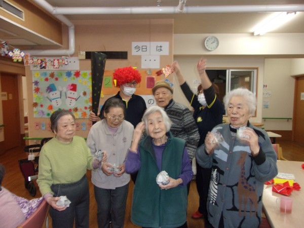 「鬼だ~やっつけろ~♪」の掛け声で鬼に豆をぶつけました♪