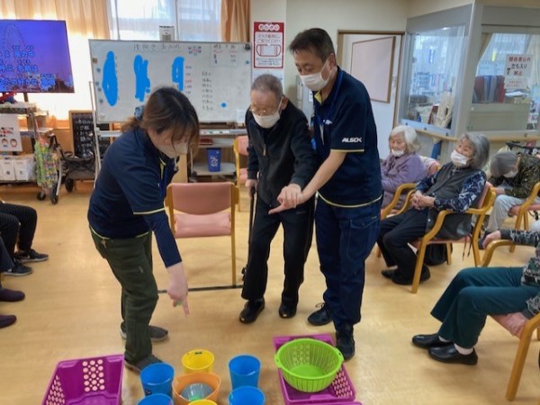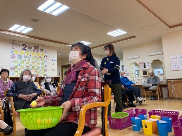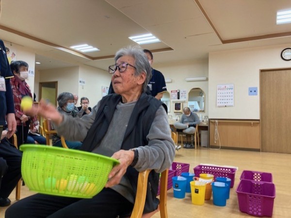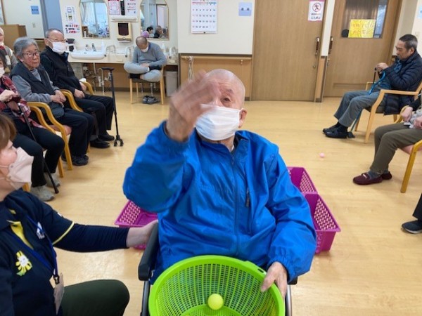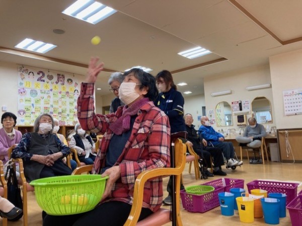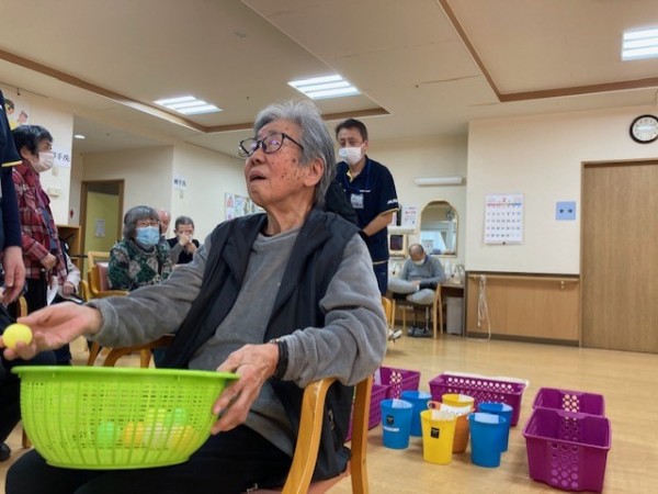 盛り上がりレク! 後ろ向き玉入れやりました!!