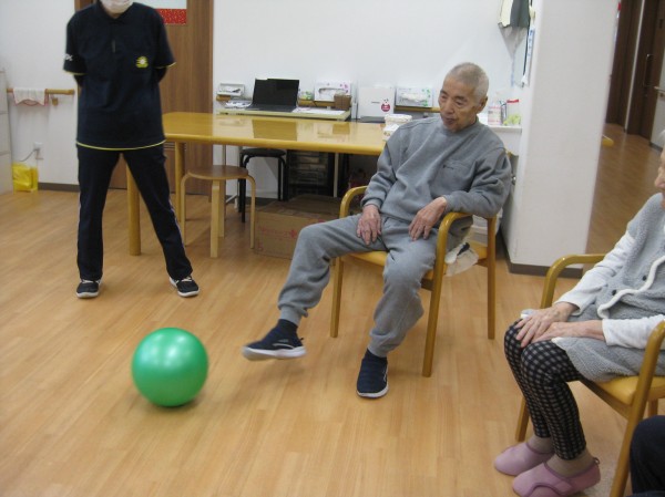 強いボールが飛んできました。ビックリです!! 職員も間に入って一緒に蹴りました(*^_^*)