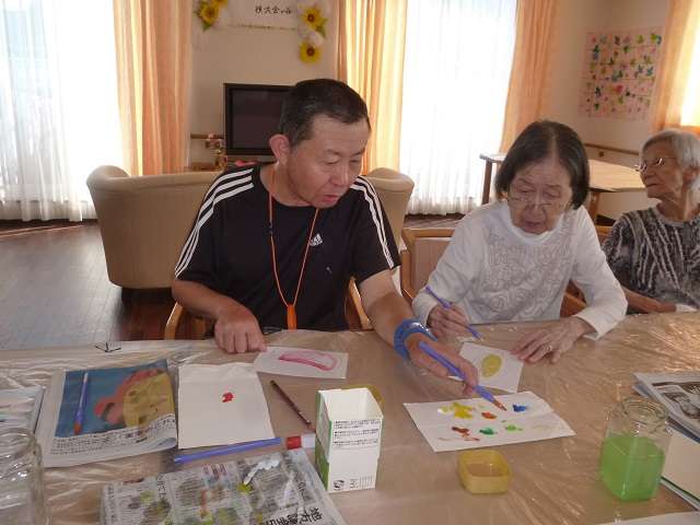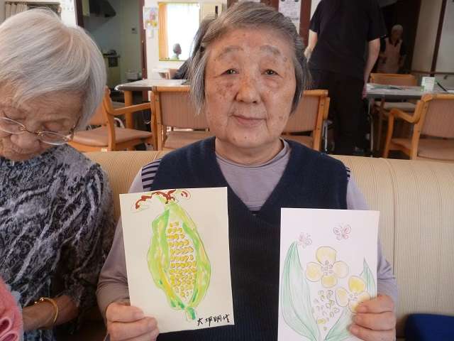 絵手紙ボランティアさんが来てくださり、絵手紙の下書き、書き方、塗り方など丁寧に教えてくださいました。