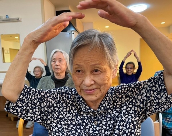 昼間は、皆様元気に体操したり