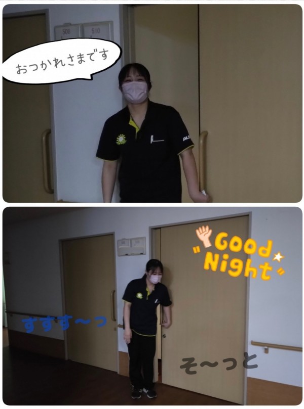 寝ていらっしゃる方を起こさないよう、でもコミュニケーションはしっかりの細やかな気遣いが頼もしい。