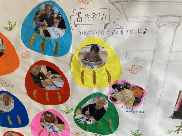 ★☆1月行事イベント初詣・書初めレクリエーション記念写真を掲示板掲載2024年✨ 『みんなの家 三橋6丁目 介護ブログ』☆★