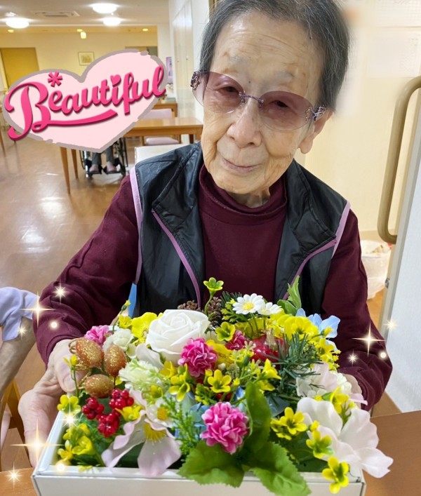 リビングに飾ってあります、先日のフラワーアレンジメントボックス