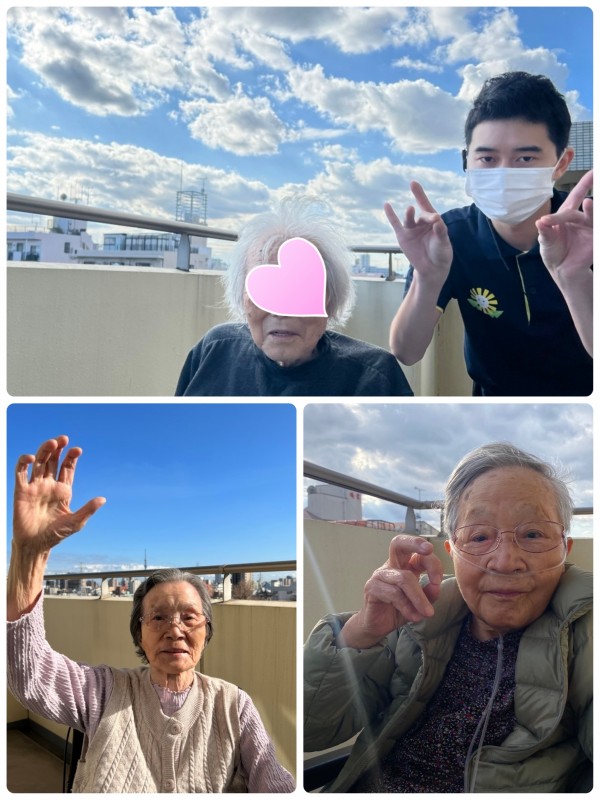 ご入居者様も職員も、気持ちが良いベランダ散歩