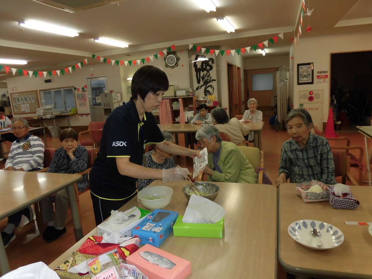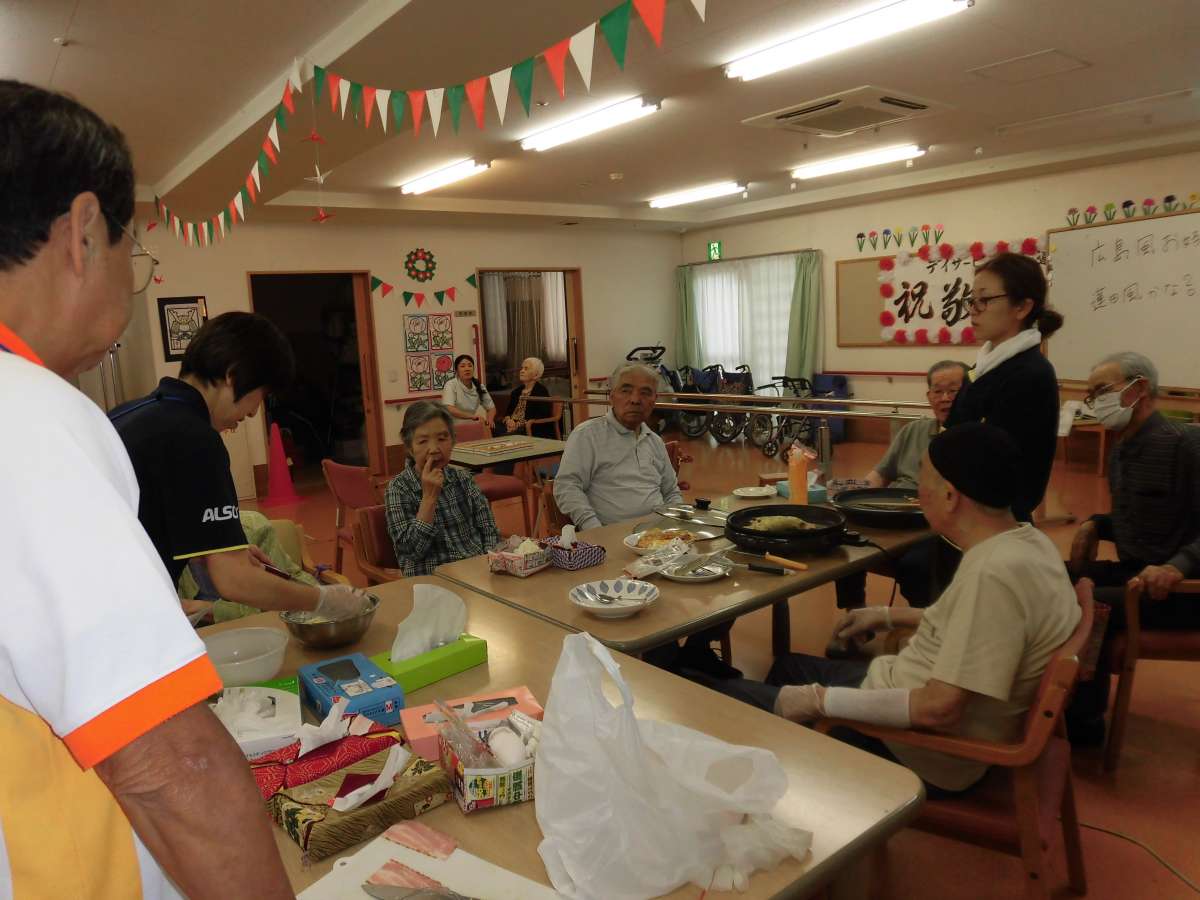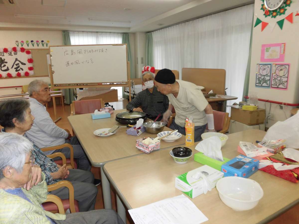今回もお楽しみレクにて、広島焼きをやってみました。
