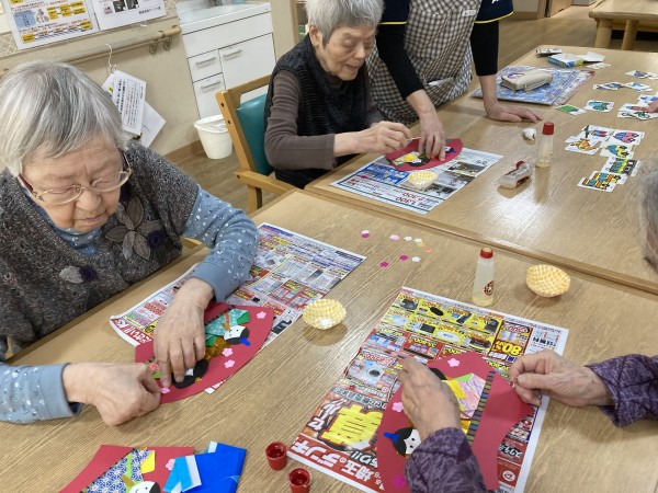 着物の柄になる色紙を選んだり、顔を書いていただきました。
